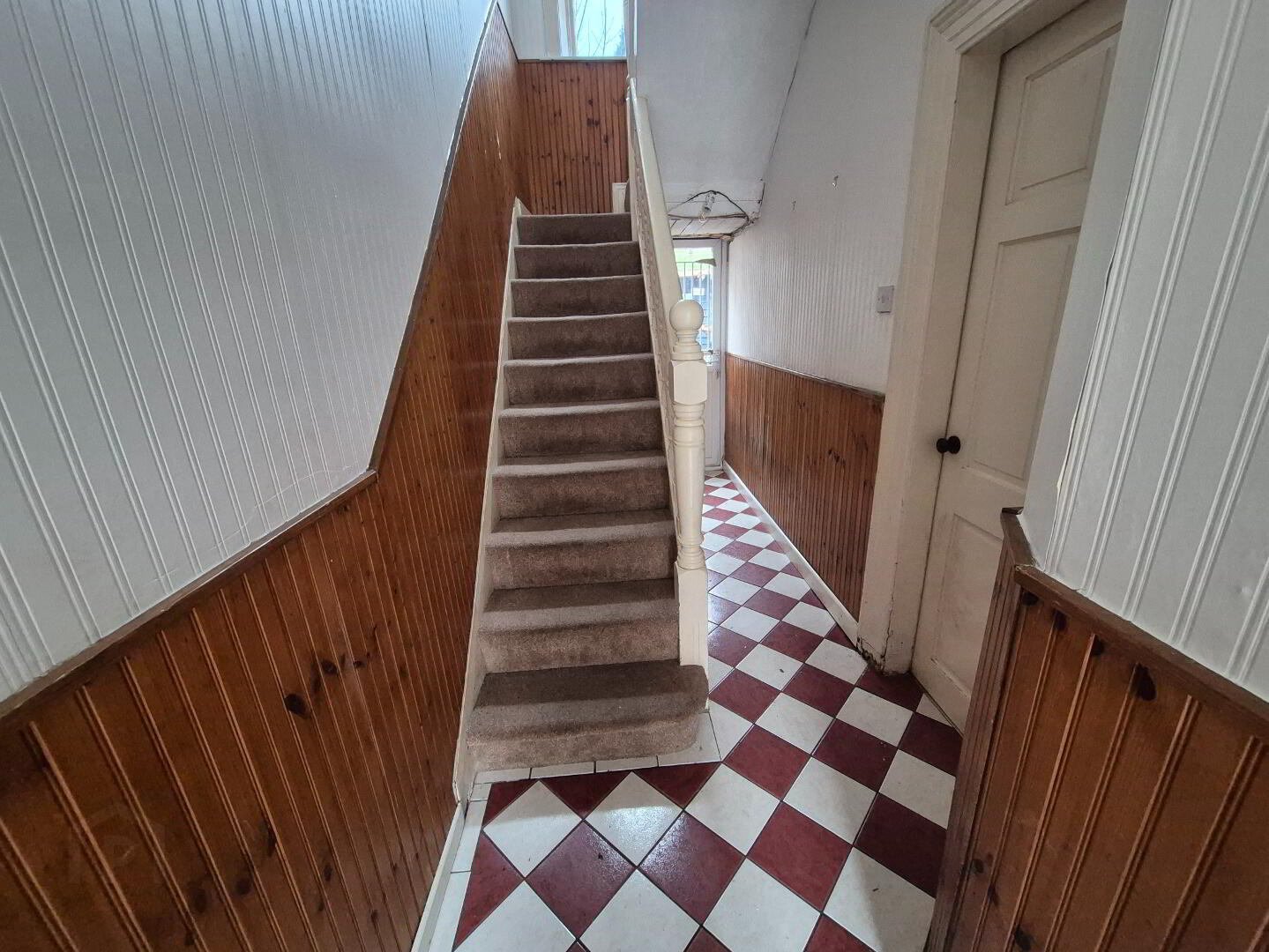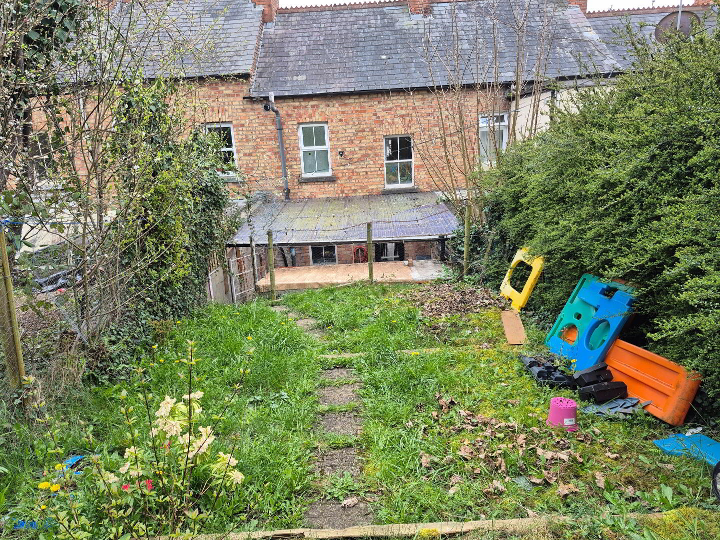 Traditional redbrick townhouse located near centre of Drogheda town and only a 5 minute walk to Lourdes Hospital. A great starter home or investment property with great potential to upgrade and extend. The current layout comprises of sitting room and kitchen on ground floor and on first floor there is one large bedroom and second bedroom that has been converted to bathroom. Some modifications on first floor should allow a layout of 2 bedrooms and bathroom. To rear there is a large patio area with steps to large long private garden which backs all the way to Trinity Gardens.