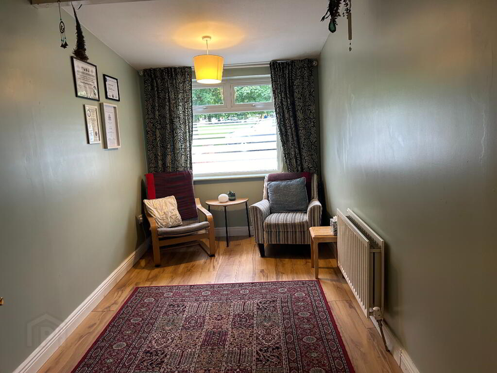 At first floor level, there are 4 no. bedrooms, two of which have built-in wardrobes. The family bathroom is fully tiled and incorporates a bath with pump shower, wc & whb. The hot press is shelved for storage and there is access via a stira to a part floored attic providing additional useful storage.