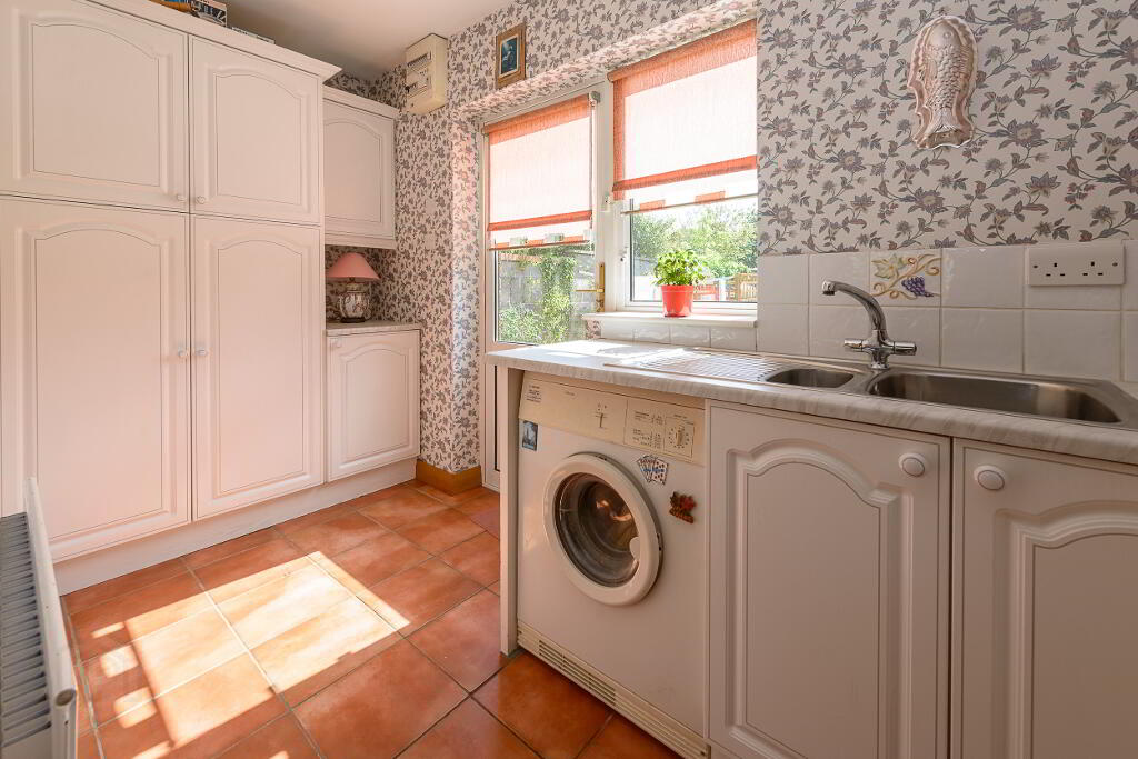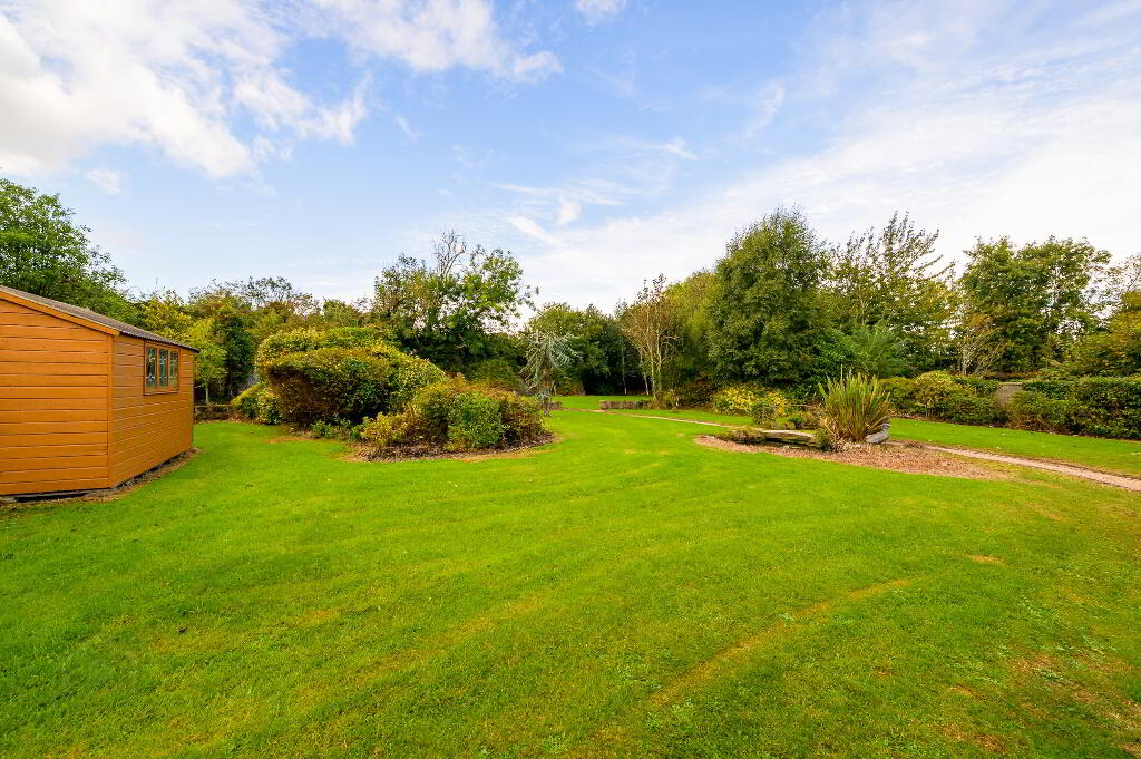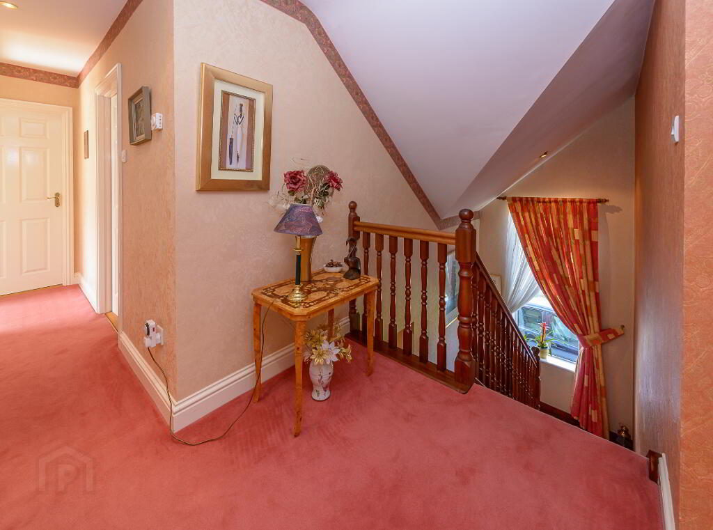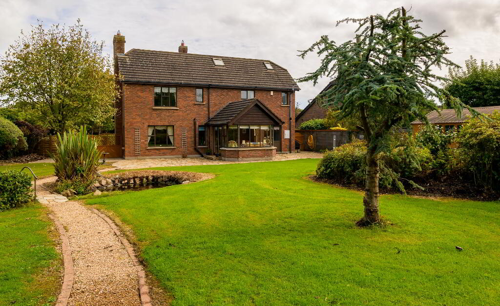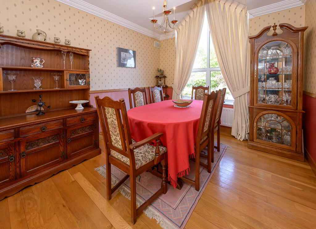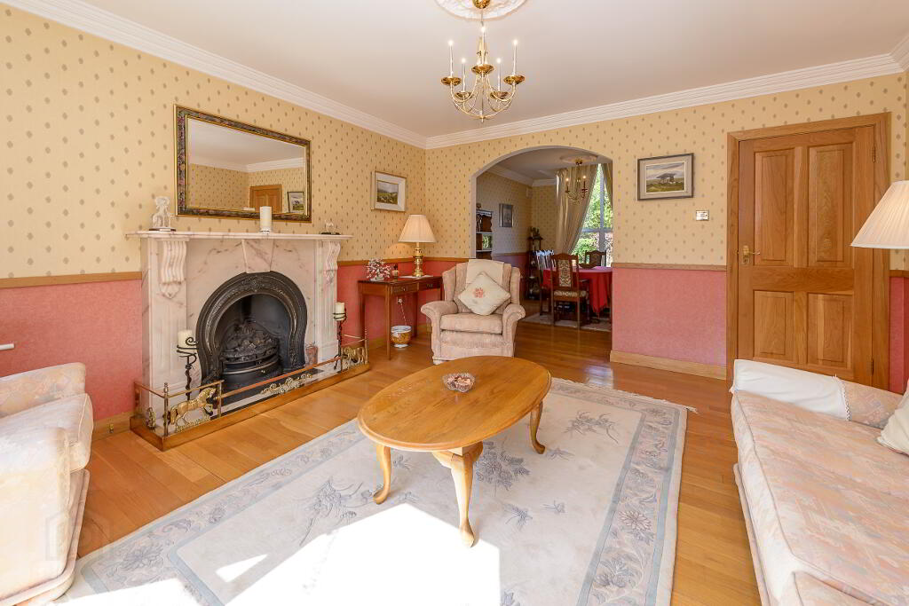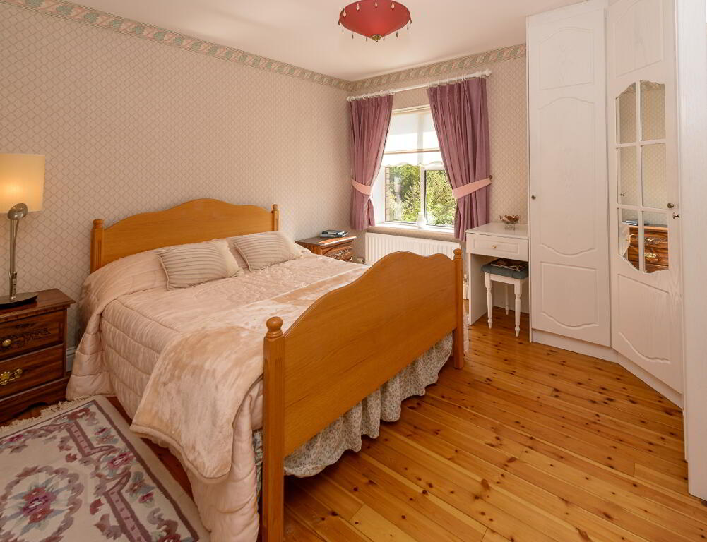 Outside: The landscaped grounds, which extend to half an acre, have been planted in a well-thought-out fashion with an array of mature specimen trees, shrubs and flowers coming into bloom through the various seasons. The rear garden has a sunny south and west aspect and has, as a centrepiece, a lovely water feature pond area…….an oasis of sheer relaxation! Set well back with a generous front lawn area, Lios Dún has a low maintenance cobble lock forecourt area providing parking for several cars to the front and side.