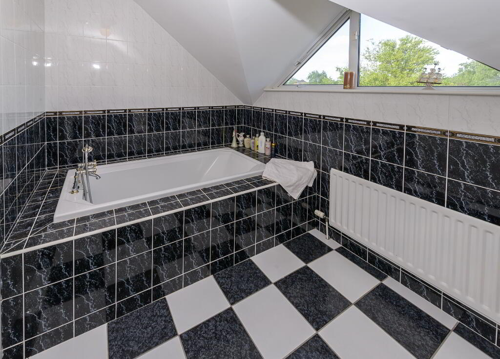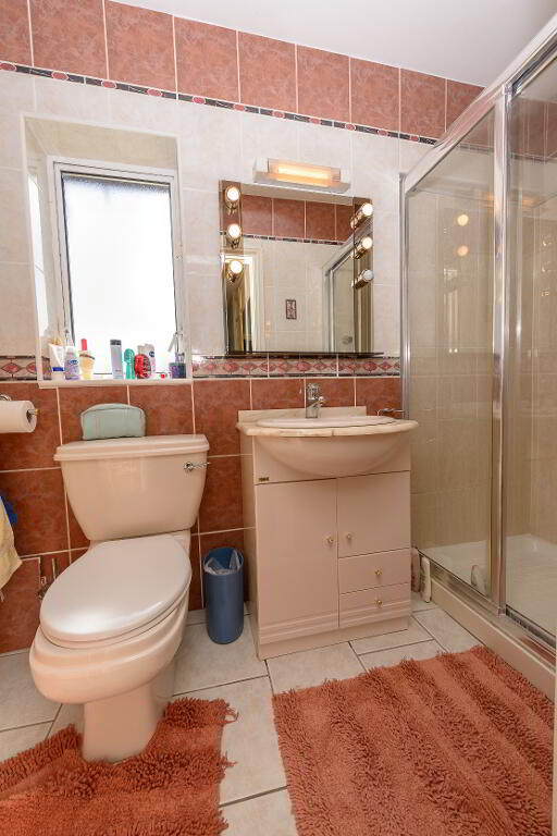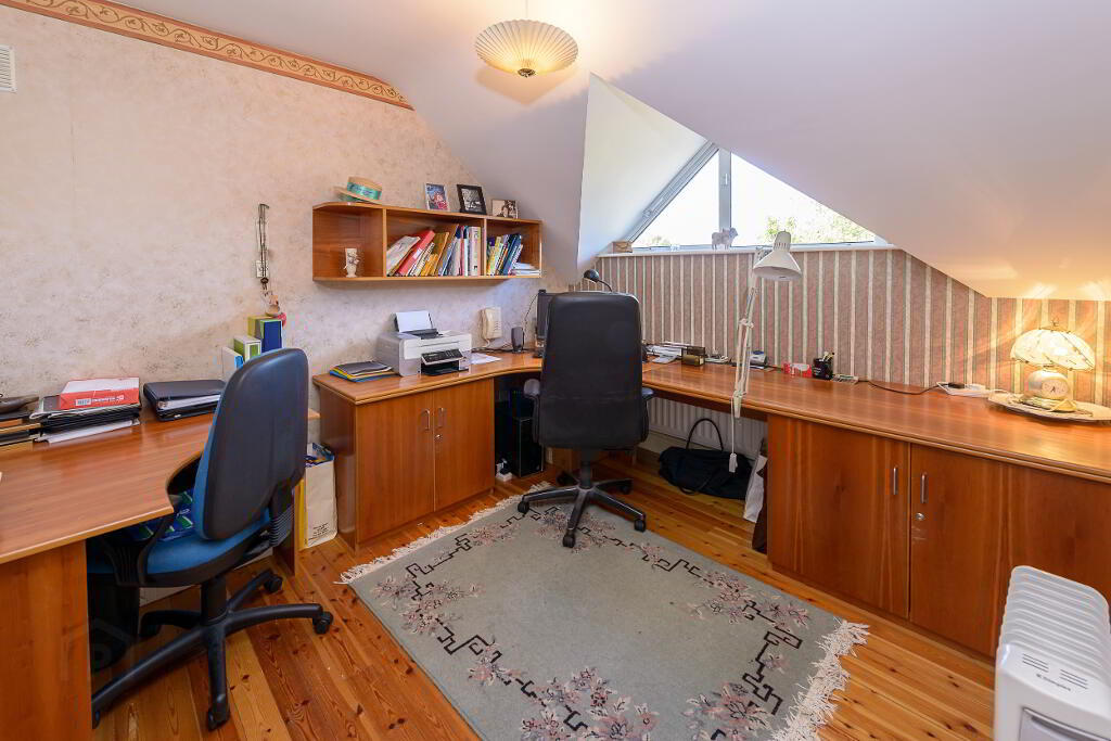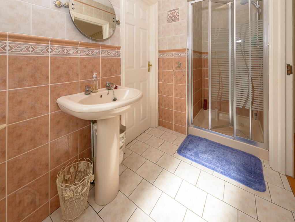 Upstairs there are four double bedrooms accessed off a spacious landing area. The master bedroom features a light-filled walk-through closet / dressing area, fully fitted and shelved with full length mirrors. This, in turn, leads into a fully tiled en-suite shower room with mirrored light fittings. The double shower incorporates a steam dome and body spray jets. Two of the double bedrooms share a Jack & Jill en-suite shower room which is fully tiled. There is also a generous family bathroom which is tiled throughout to a high standard. A walk-in hot press provides valuable storage space and has a pull-down stair to the floored attic providing additional useful storage space.
