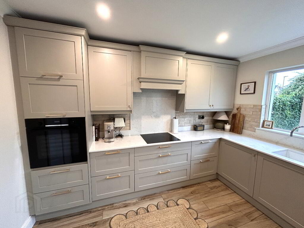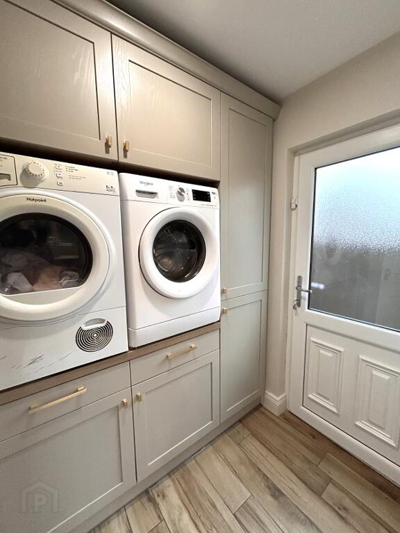 The stunning newly fitted kitchen is finished with sleek quartz worktops and combines style with practicality. The kitchen is fully equipped with new white goods, including a built-in hob, oven, microwave and dishwasher, creating a contemporary and functional space ideal for everyday living. A separate utility room, plumbed for a washing machine and featuring an eye-level tumble dryer, offers additional storage and convenience.