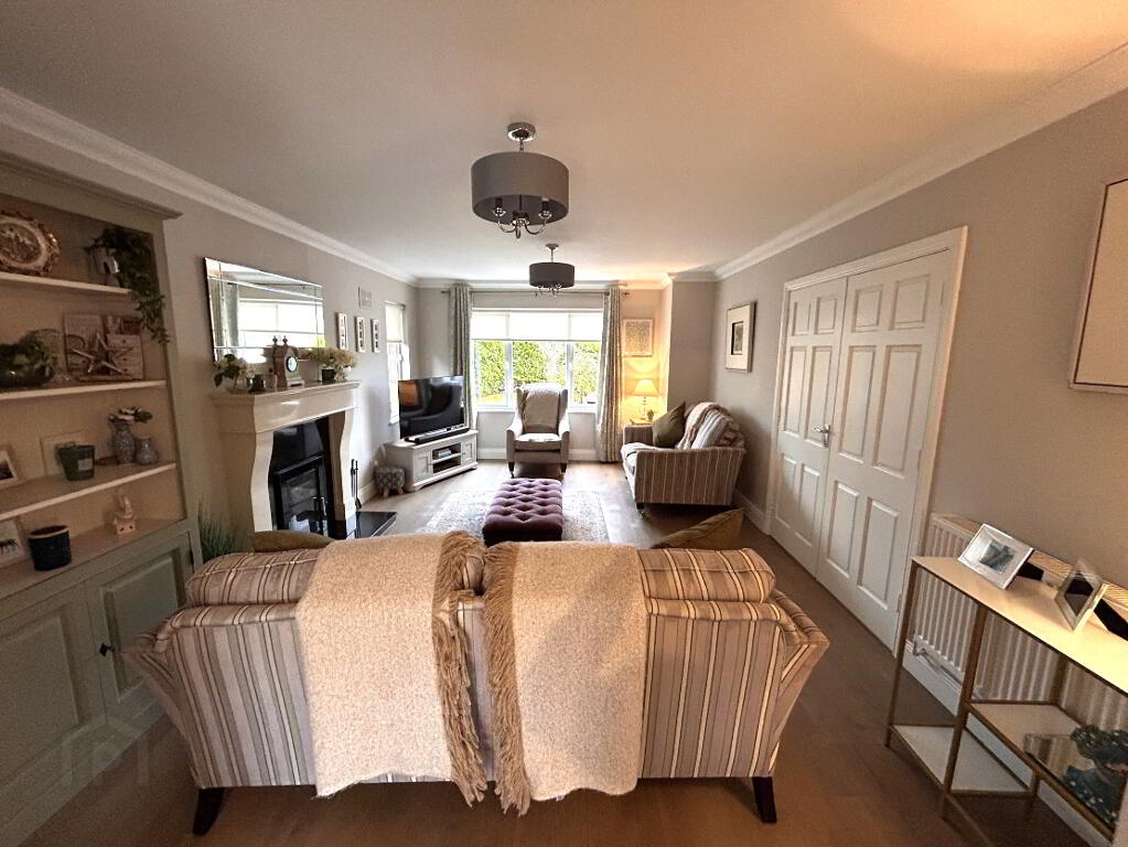 Kitchen/dining: 9.13m x 3.53m -Tiled, breakfast bar, larder press, Quooker tap, oven, induction hob, dishwasher, water softener, patio doors to garden.