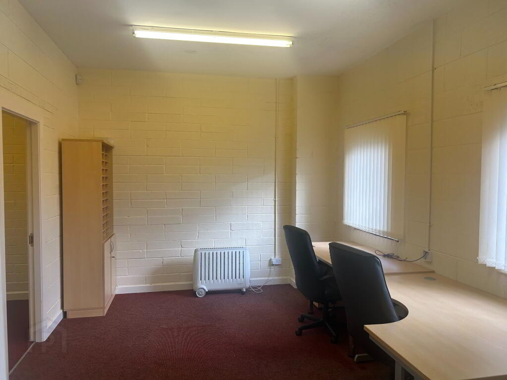 Fitted offices, painted walls & carpet flooring.