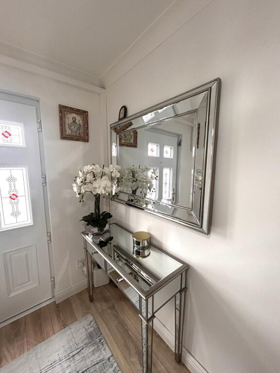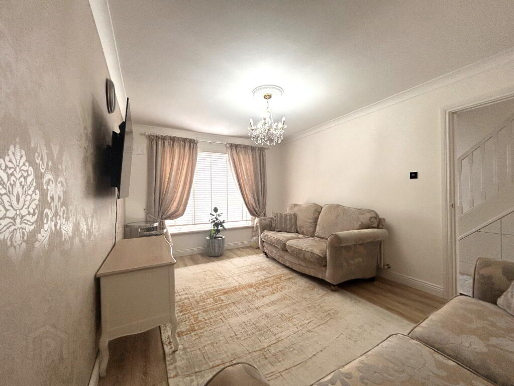 • Living room: 4.62m x 3.16m – Laminate, feature wallpaper on one wall.