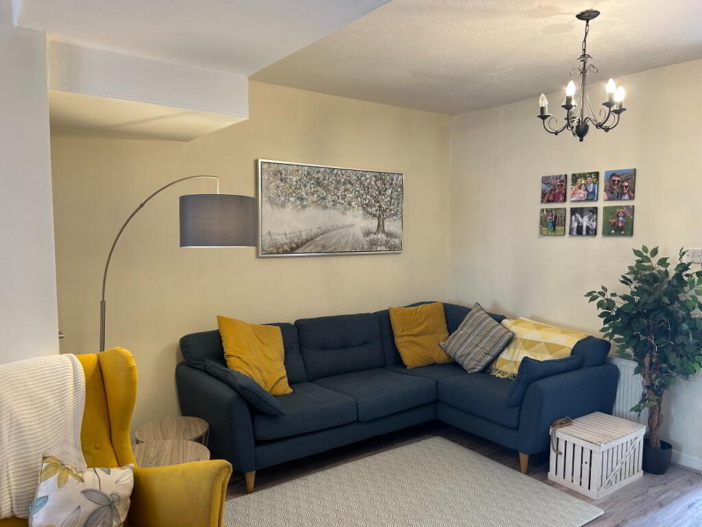 No 17 Greenhills is a cute and charming home in move-in condition with a host of appealing features and design flourishes having been added over several years. Once inside the front door, there is a lovely feeling of a well-cared for family home. Off the front hall, there is a generously proportioned double-depth living room with feature open fireplace complete with stone and decorative tile inset. An additional chimney breast has been cleverly repurposed as a display cabinet with alcove book shelving to one side. The rear eat-in kitchen has attractive wood effect tiling and is fitted with a good range of wall & floor storage units. Kitchen appliances include in sale: electric oven / hob / extractor, fridge freezer and dishwasher. Off the kitchen, the utility room has a washing machine as an inclusion and is plumbed for a dryer. The new gas boiler was installed in 2018.