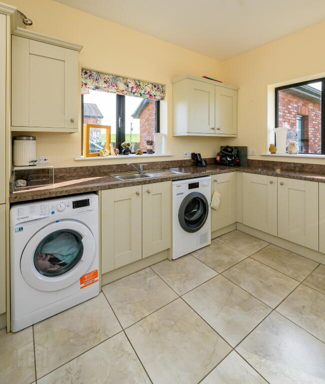 • Laundry Room: 3.58 x 2.28, Tiled floor, dual aspect, plumbed for washing machine, range of fitted units, sink.