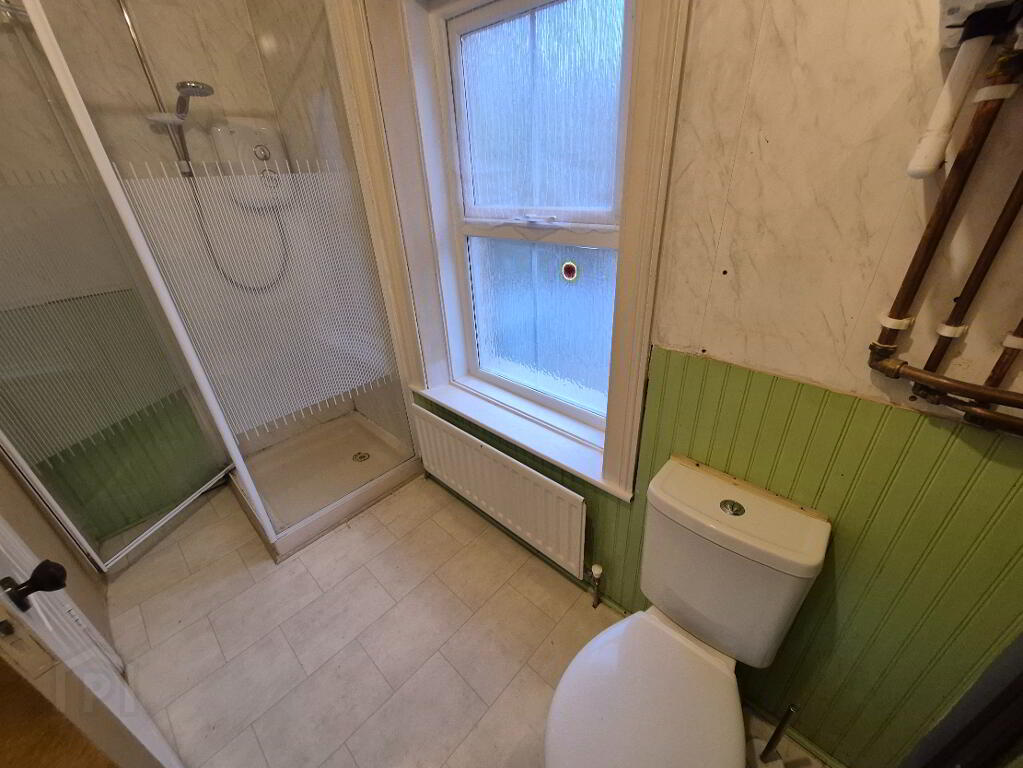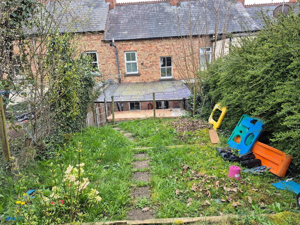 Traditional redbrick townhouse located near centre of Drogheda town and only a 5 minute walk to Lourdes Hospital. A great starter home or investment property with great potential to upgrade and extend. The current layout comprises of sitting room and kitchen on ground floor and on first floor there is one large bedroom and second bedroom that has been converted to bathroom. Some modifications on first floor should allow a layout of 2 bedrooms and bathroom. To rear there is a large patio area with steps to large long private garden which backs all the way to Trinity Gardens.